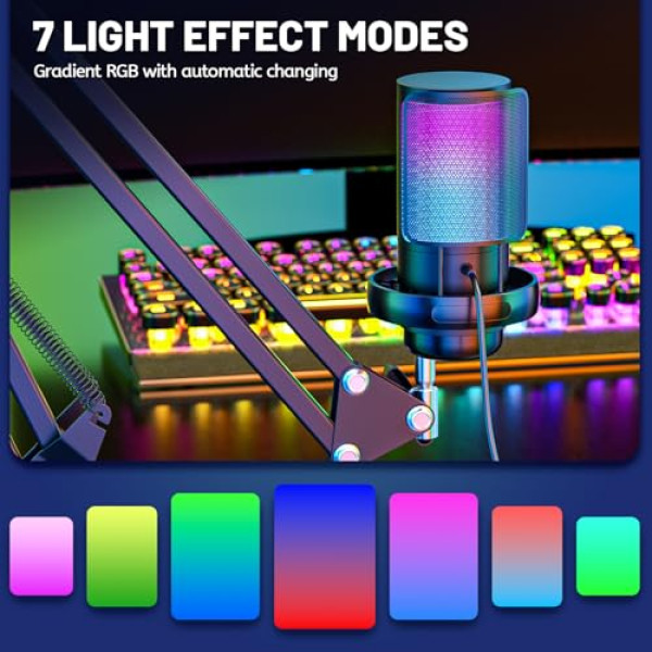 Microphone RGB Anykuu - 7 Couleurs Variables - USB Gaming