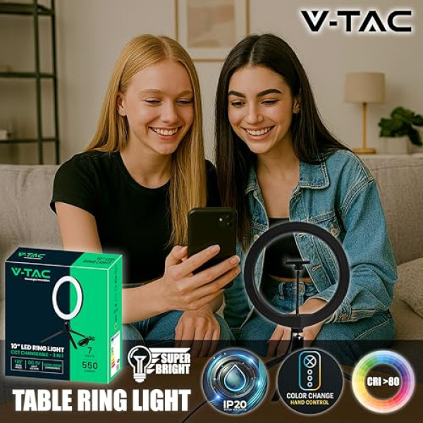 Transformez votre espace créatif avec ce Ring Light professionnel V-TAC de 10 pouces (26 cm), l'accessoire indispensable pour tous vos contenus visuels. Idéal pour les créateurs de contenu, les amateurs de selfies ou les professionnels en quête d'une lumière parfaite. ✨