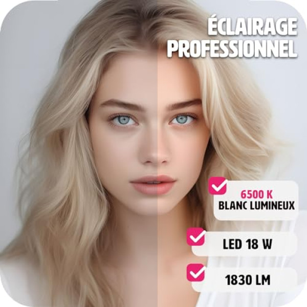 Équipé d'une LED puissante de 18 Watts avec une température de couleur de 6500 Kelvin imitant parfaitement la lumière naturelle du jour, ce softbox devient votre allié pour des prises impeccables. Ces conditions d'éclairage optimales éliminent les ombres disgracieuses et mettent en valeur chaque détail de vos sujets - exactement ce dont vous avez besoin pour créer une lumière ASMR parfaite dans vos créations sonores et visuelles.